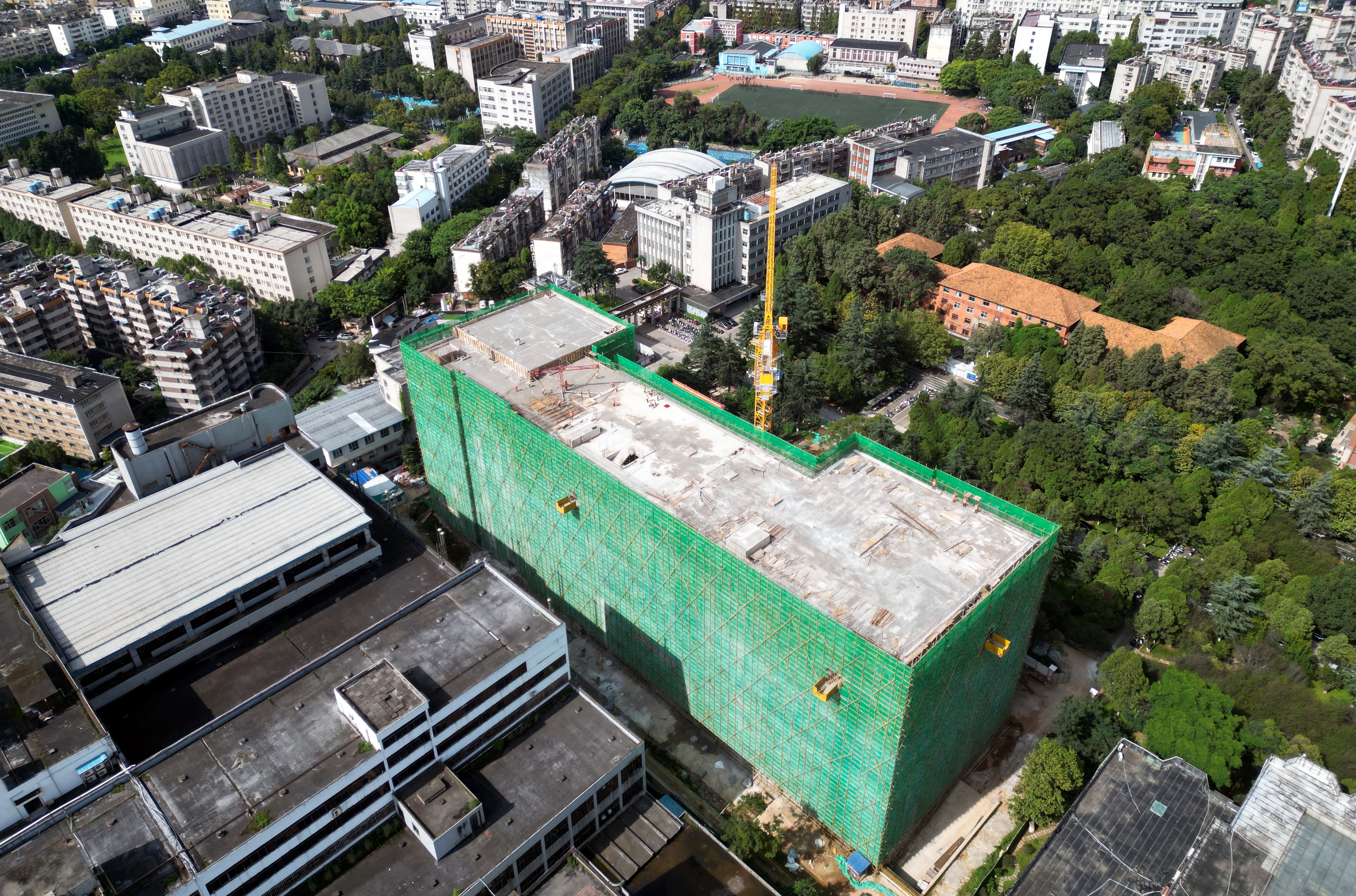 據悉,該項目位于昆明市五華區一二一大街文昌巷昆明理工大學蓮華校區內,總建筑面積約2.55萬平方米,規劃建設1棟地上八層、地下一層的教學實訓用房。目前,項目已完成封頂目標。